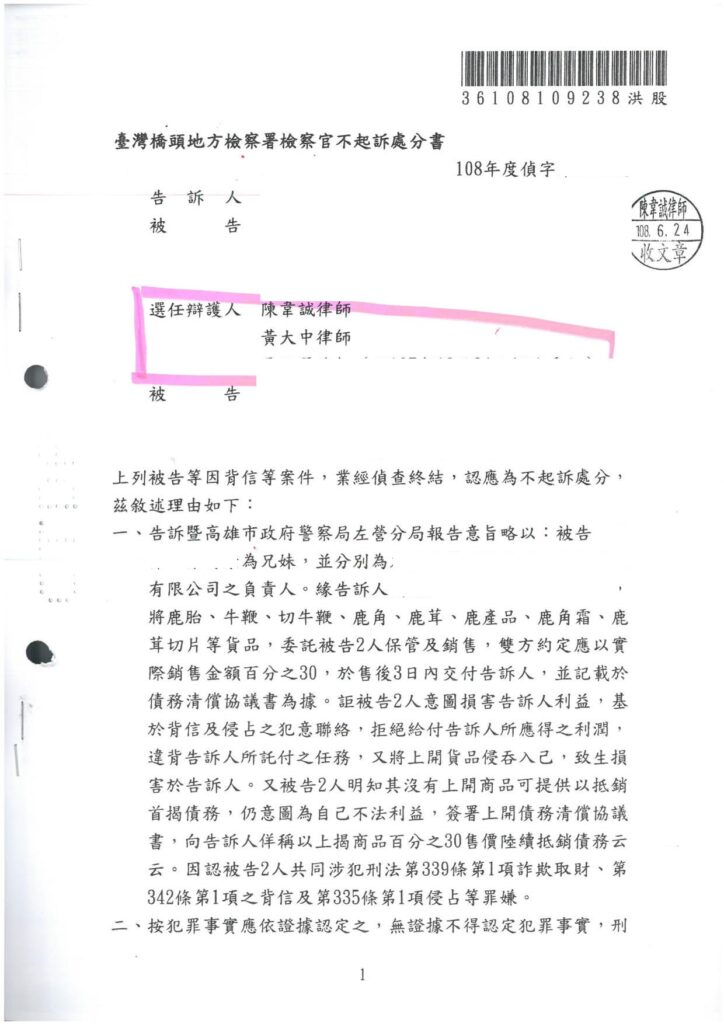 當事人與告訴人間有生意之來往,某次雙方交易時,因故發生糾紛,告訴人認定當事人並為詳實履行雙方契約,因而認為告訴人屬於詐欺、背信,並因而提出刑事告訴。當事人接獲偵查開庭通知後,委任本所律師為偵查中辯護人,經本所律師協助提出相關事證並向檢察官釐清本件交易過程後,獲得檢察官對當事人為不起訴處分,免除後續訴訟之煩,並保障當事人權利。